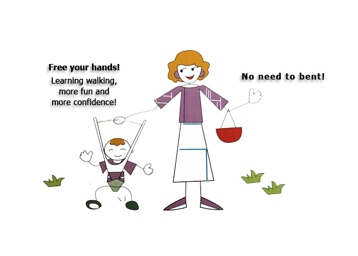 Η περπατούρα ζώνη στήριξης φοριέται σαν γιλέκο από μπροστά και κουμπώνει στο πίσω μέρος. Η προσαρμογή στους ώμους είναι πολύ απλή, ενώ το δέσιμο είναι απαλό, άνετο και ασφαλές. Το λουράκι μπορεί να ρυθμιστεί και διαθέτει στο πάνω μέρος του ειδική λαβή για καλύτερο πιάσιμο και καλύτερη ισορροπία του παιδιού, ενώ σε δεύτερο χρόνο μπορεί να χρησιμοποιηθεί σαν μέσο συγκράτησης και ασφάλειας σε πολυσύχναστους χώρους.