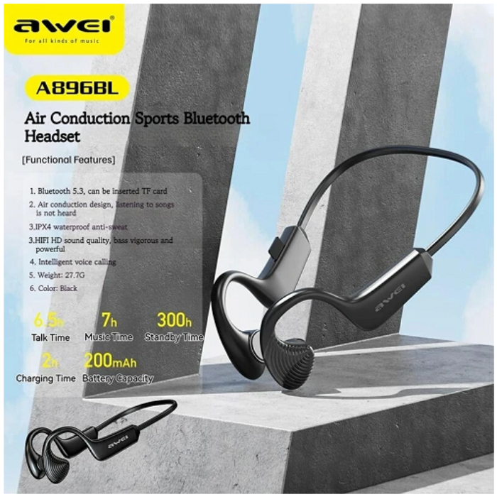 Awei A896BL Air Conduction Bluetooth Handsfree Ακουστικά Μαύρα Κατασκευαστής: OEM, Κωδικός: 001.8784